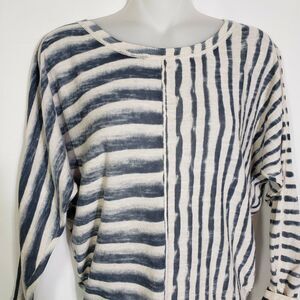 DKNY Jeans Petites Womens Size PS Top 100% Cotton Striped Blue Beige Dolman