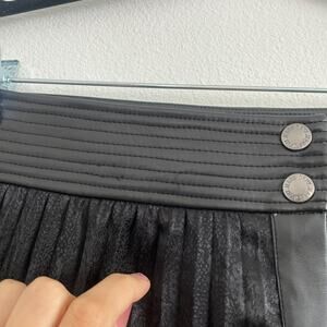 DKNY Jeans Pleated Skirt Women 14 Black Faux Leather Satin Knee Length Classic