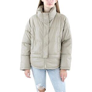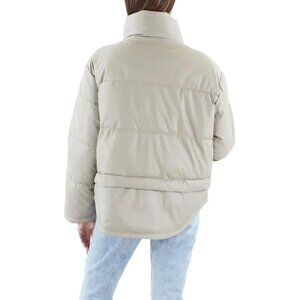 DKNY Jeans Puffer Jacket Faux Leather Short Womens Large E3HDLP78 Tan Was $189