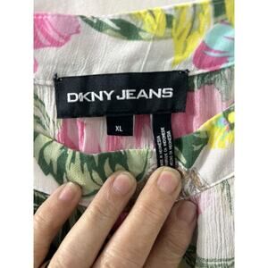 This beautiful DKNY Jeans summer floral dress is the perfect addition to any wardrobe. With its round neckline and strappy sleeves, it's perfect for a casual day out or a summer travel adventure. The dress is made from soft cotton material and features a lovely floral pattern that will make you feel like you're walking in a field of flowers. It's a midi length dress, making it suitable for both spring and summer seasons. This dress is brand new, never been worn and is available in size XL. The dress also comes in a beautiful white color, adding to its elegance.