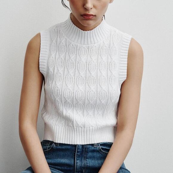 DKNY Jeans Sweater Ribbed Knit Cotton Sleeveless Mock Neck Top White NWT XL