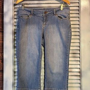 Classic bermuda shorts from DKNY Jeans. Size 8. Worn in look. 98% cotton, 2% spandex. Machine washable. Made in Vietnam. Excellent condition. Nonsmoking home.
