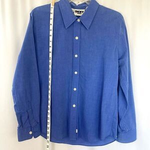 DKNY Jeans Top Women’s 8 Blue 100% Cotton Long sleeves Collared Button Down Pro