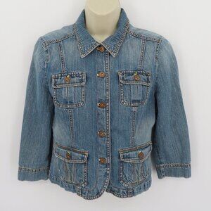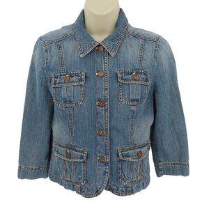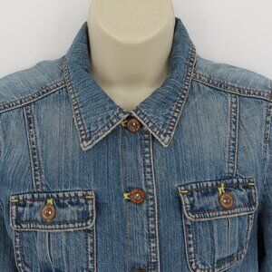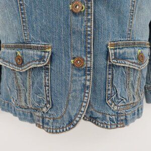 DKNY Jeans Women Small Blue Denim Jean Jacket Collar Button Pockets Cotton Y2K