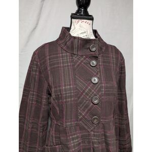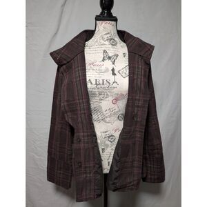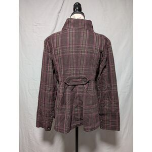 DKNY Jeans Women's Brown Purple Plaid Button Jacket Funnel Neck Fall Coat Large