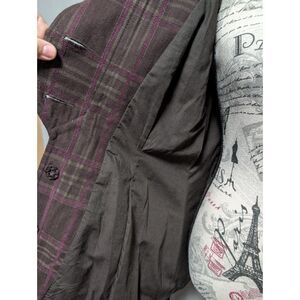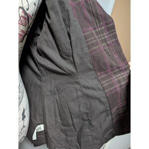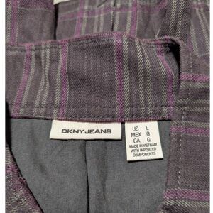 DKNY Jeans brown and purple plaid button up jacket.