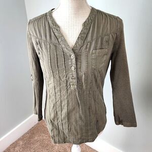 DKNY Jeans Women’s Long Sleeve Button Up V Neck Top Size Small