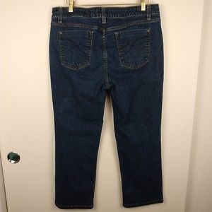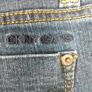 DKNY Jeans Women's Plus Size 16 Blue Denim Straight Leg Embroidered back pockets, Embroidered Logo.