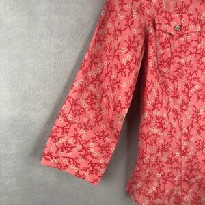 DKNY Jeans Women's Size Medium Floral Snap Front Shirt Pink