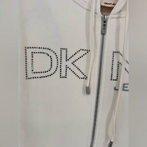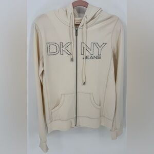 DKNY Jeans Women's Studded Sequined Logo Zip Up Hoodie