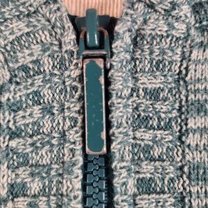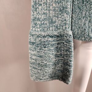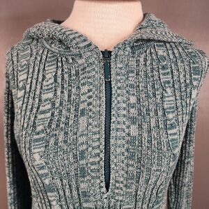 DKNY Jeans Women's Sweater SZ M Hooded 1/2 Zip Pullover Knit Green Bell Sleeve