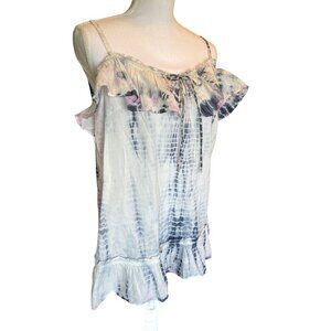 DKNY Jeans Womens XL Tie Dye Ruffle Top Cotton Off Shoulder MSRP $59 NEW