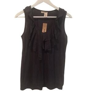 DKNY Jeans ruffle tank New With Tags. Black and grey striped. 25 shoulder to hem. 18 inches underarm to underarm.