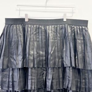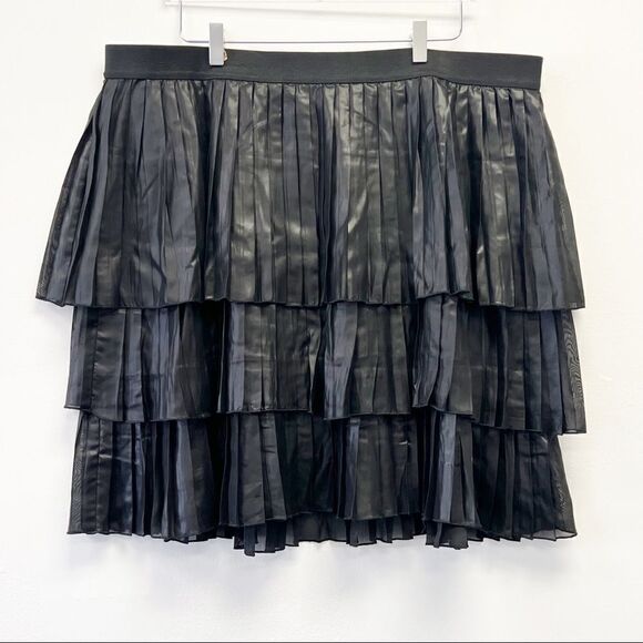 DKNY Jeans Plus Size Three Tiered Pleated Mini Skirt, Black Size 24- Plus size lightweight, semi sheer, pleated woven skirt with three tiers and banded elastic waist.