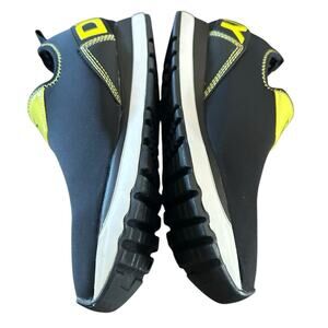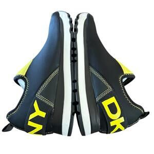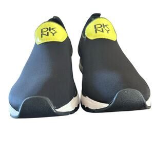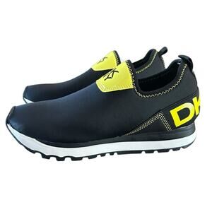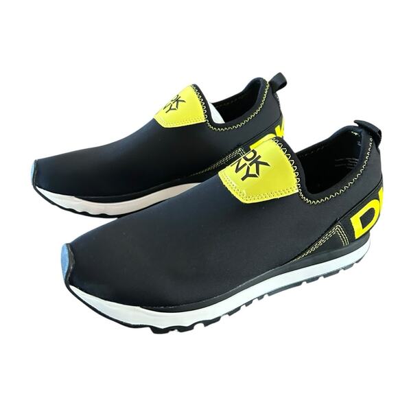 DKNY Jolie-Slip On Sneakers Neoprene Black Neon Yellow Logo NEW 6