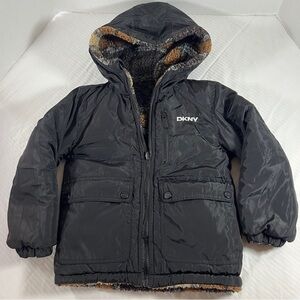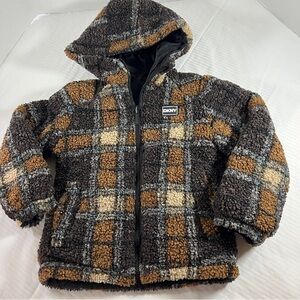 DKNY Kids Black and Brown Plaid Reversible Puffer Jacket size 5/6
