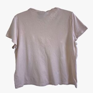 DKNY L Cotton Modal Sequin Pocket Short Sleeve Neutral Pink Beige Boxy Knit Top