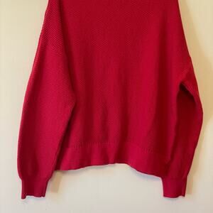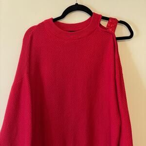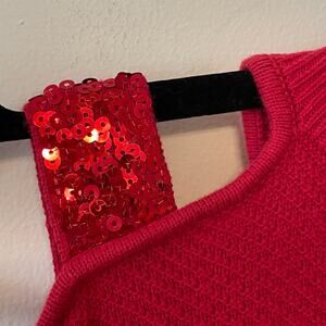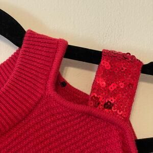 DKNY L red pullover sweater knit cold shoulder sequin band cozy cabincore fall