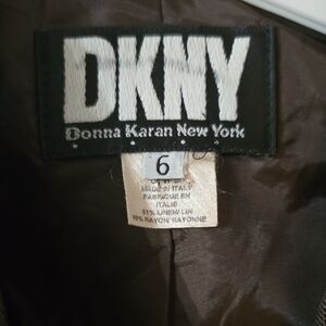 Elevate your style with this DKNY ladies brown blazer. Perfect for any occasion, this jacket offers a sleek and sophisticated look. The rich brown color adds a touch of elegance to your wardrobe.