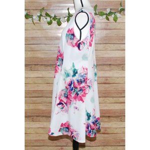DKNY Ladies Floral Scuba Dress Size 14 Fit And Flare Back Zip Sleeveless Stretch