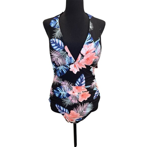 DKNY Ladies Halter Shirred Swimsuit Size XLarge Tummy Control New With Tags NWT