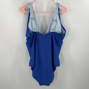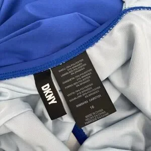 DKNY Lapis Swimsuit Size 16 Plunge Colorblock One Piece Plus Curvy Swim Blue NWT