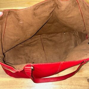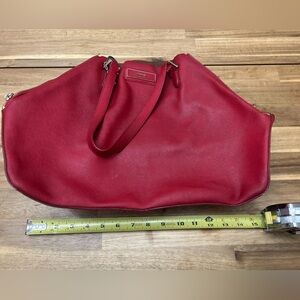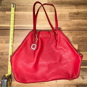 DKNY Large Saffiano Rich Red Leather Tote Gold Accents Expandable Zip Top