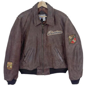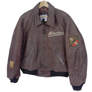 DKNY Leather Bomber Jacket Zipper Patches Logo American Motor S Vintage