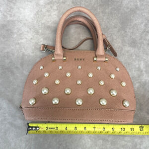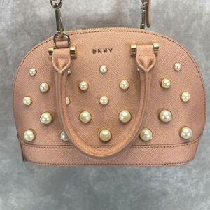 DKNY Leather Dusty Rose Round White Pearl Small Satchel Gold Hardware Crossbody