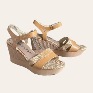DKNY Leather Reptile Boho Tan Wedge Platform Sandals Size 9