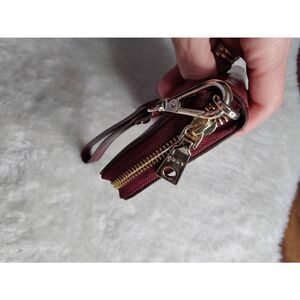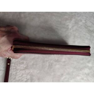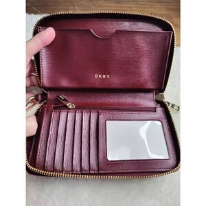DKNY burgundy leather zip around wallet with wrist strap. In excellent pre-owned condition. 7" x 4". Measurements are approximate. Bundle this wallet with two other items from my closet and receive 20% off.