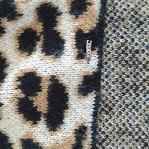 DKNY Leopard Print Funnel Neck Hi-Low Cozy Oversized Mob Wife Sweater.