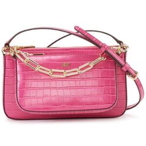 Discover the DKNY Pink Shoulder Bag, a perfect blend of luxury and practicality. Crafted with a chic crocodile-embossed texture, this bag offers a structured silhouette and an adjustable shoulder strap for versatile wear. Its medium size makes it ideal for carrying your essentials with style and ease.