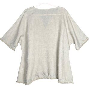 Elegant light gray blouse with V-neck. Relaxed fit and short sleeves. Perfect for casual wear.
