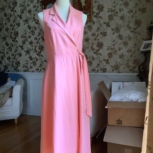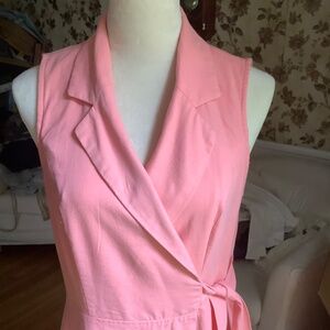 DKNY Linen Blend Wrap Dress Coral Pink US Size 8