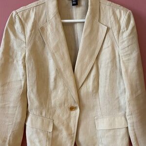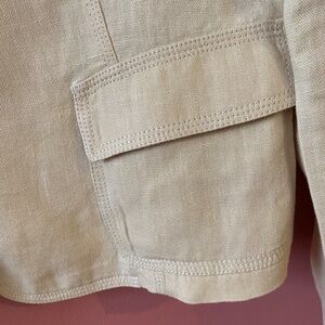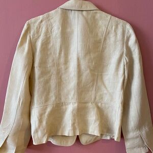 DKNY 100% Linen Jacket Size 8. Sand Colored. Two small discolorations on the back of one sleeve near the cuff.
