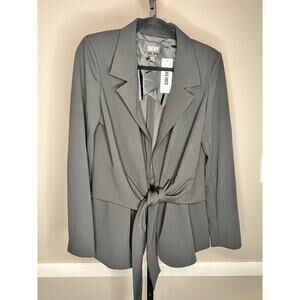 DKNY Long Sleeve Notch Lapel Tie Waist Career Blazer Black Women's Size US 8 NWT