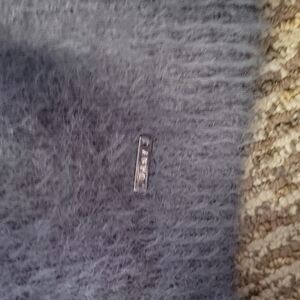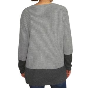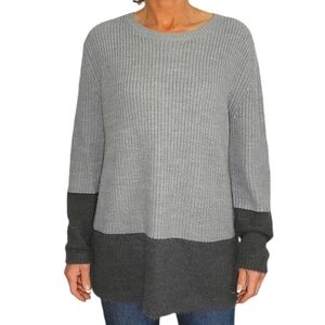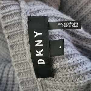 DKNY Long Sleeve Ribbed Knit Faux Fur Sweater Large Grey