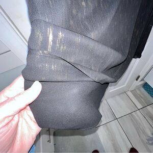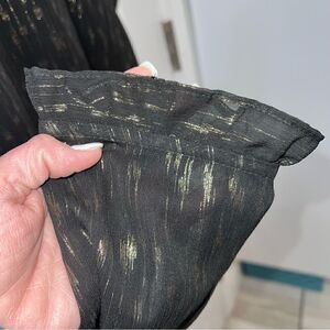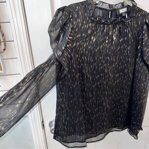 DKNY Long Sleeve Ruffle Black & Gold Blouse size Large w keyhole button closure