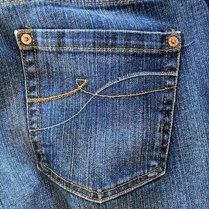 DKNY Ludlow Bootcut Distressed Jeans Stretch Whiskering Faded Mid Rise