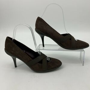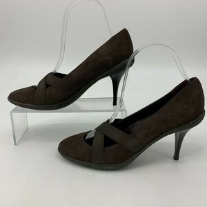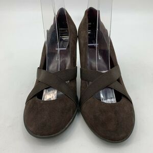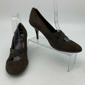 DKNY MARY JANE PUMPS WOMEN'S SIZE 7.5 BROWN CRISS CROSS STRETCH SUEDE HIGH HEELS
