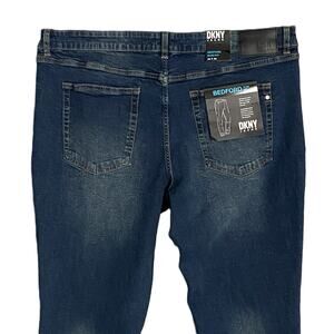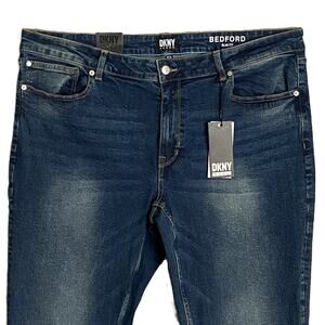 This listing is for a new with tags DKNY Men's 38x30 Bedford Slim Fit Blue Denim Jeans. Slim Fit (sits below the waist, slim fit through seat and thigh, slim leg), 2-Way Stretch Fabric, 5-Pocket Design, Button/Zip Closure. 98% Cotton, 2% Spandex, Machine Washable.
