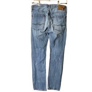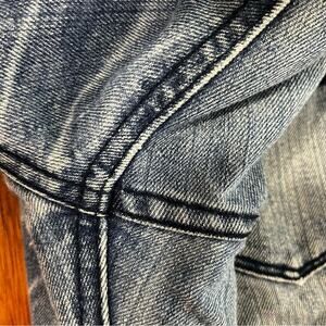 In very good preowned condition with no flaws: no tears, wear, or smell. Back pocket has some faint pink spotting, see close up photo. Comes from smoke free home. Size 34/32, altered to 35/30. Measurements laid flat: waist 17”; hip 22”; inseam 30”; front rise 10”; back rise 15”; leg opening 8”.