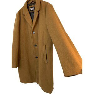 DKNY Mens Camel Overcoat Large RK10394 EUC Wool Blend Winter Lined Brown