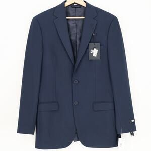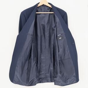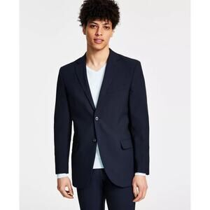 DKNY Men's Navy Stretch Formal Office Modern-Fit Tailored Suit Jacket Size 40L