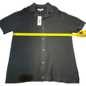 DKNY Mens Size M Black Short-Sleeve Open-Knit Button-Up Shirt