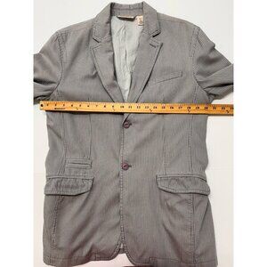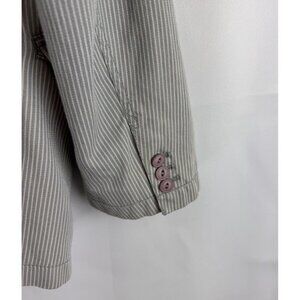 DKNY Mens Sport Coat M Gray White Striped Casual Cotton Unstructured Blazer