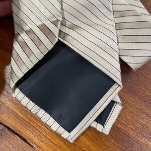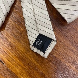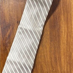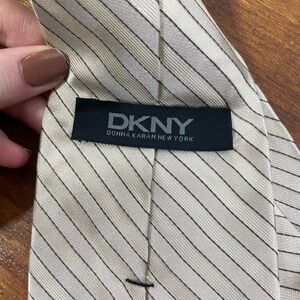DKNY tan/cream colored tie! In excellent condition! Has a slanted striped pattern