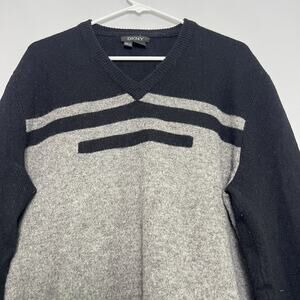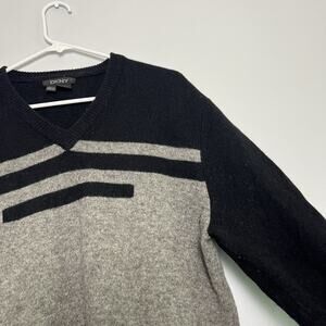 DKNY Men's Wool Knit V Neck Sweater Sz L Green Black Colorblock Office Classic