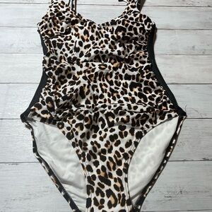 DKNY Mesh side One Piece Swimsuit Animal Leopard bathing suit tummy control 6 8